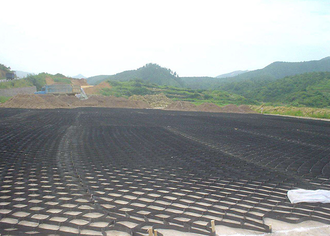 土工格室是由高強度的HDPE或PP共聚料寬帶,經過強力焊接或鉚接而形成的一片網狀格室結構。它伸縮自如,運輸時可縮疊起來,使用時張開并又充填土石或混凝土料,構成具有強大側向限制和大剛度的結構體。它可用來做為墊層,處理軟弱地基增大地基的承載能力,也可鋪設在坡面上構成坡面防護結構,還可以用來建造支擋結構等。